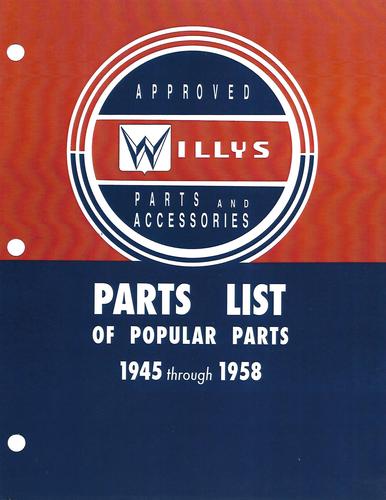 This is an ORIGINAL REPRODUCTIONS high quality reprint of a 1962 Willys Motors Inc. Publication. This Master Parts List covers all 1952-1965 Willys-Overland and Jeep Utility Vehicle models 475 SW, SD / 475 4x2 SW, SD / 475 4x4 SW, SD / 475 4WD 685 SW, SD / 6-226 4x2 SW, SD / 6-226 4x4 SW, SD / 6-226 4WD Engines: 4-cylinder F head / 6-clyinder L head / 6-cylinder overhead cam. This Master Parts List is 506 pages, 8.5” x 11”, loose leaf, card stock covers, three hole punched and shrink wrapped.